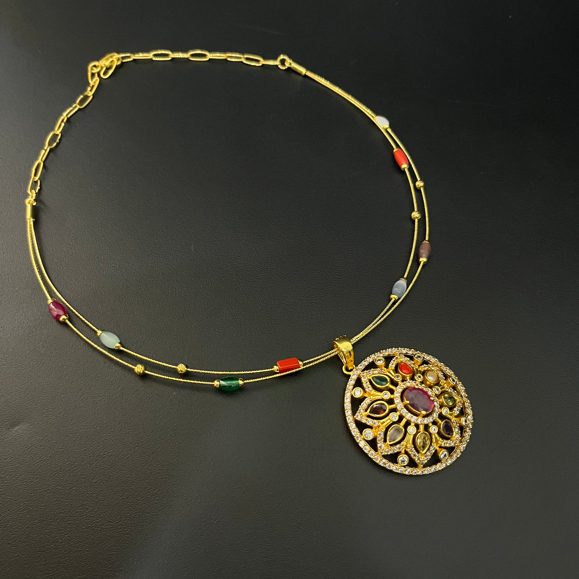 Navratna Stones Studded Necklace in Silver – Gold Polished