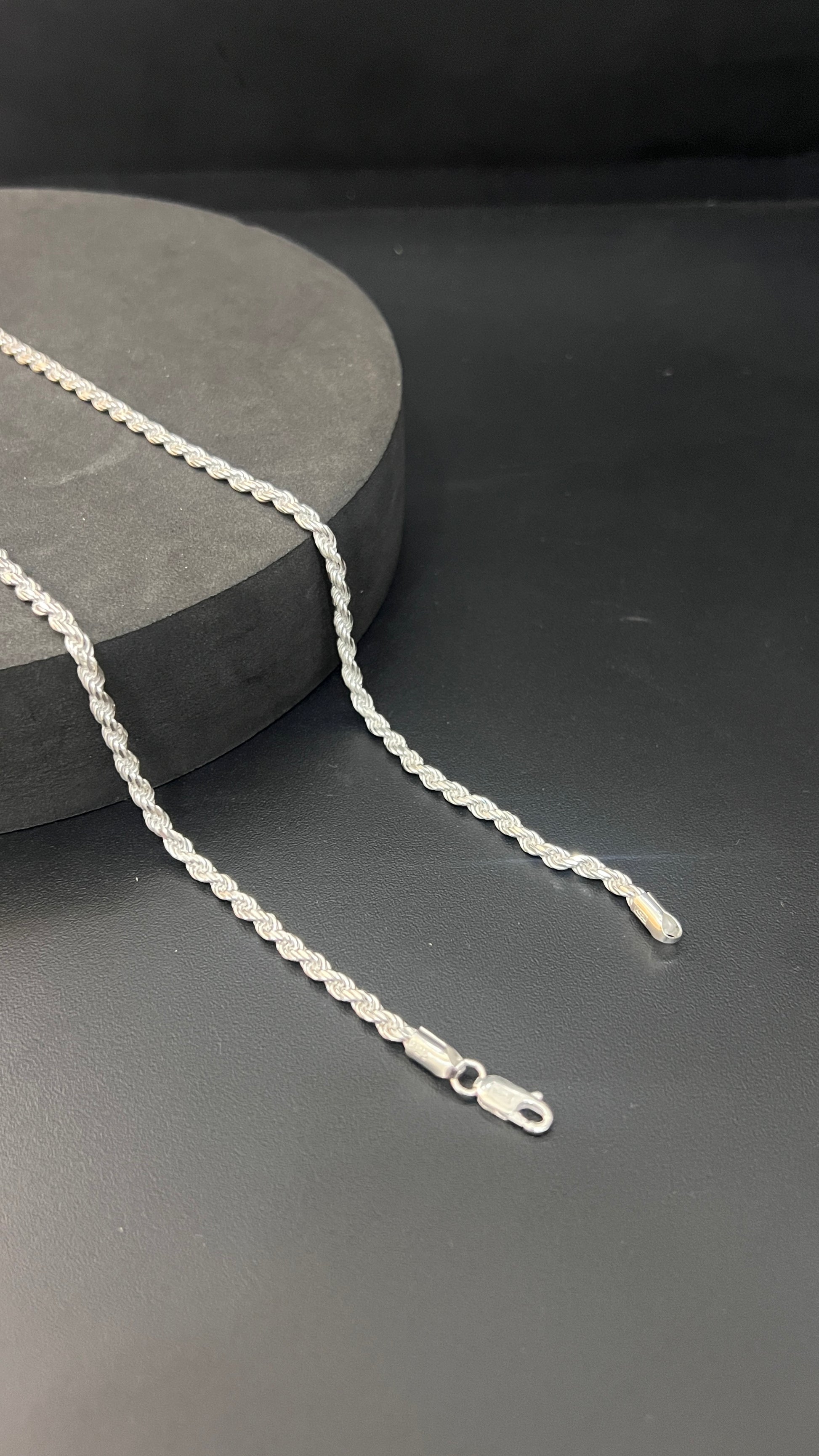 Elevate your style with our Silver Rope Chain for Men, a timeless piece that blends strength and sophistication. Crafted from pure 925 sterling silver, this chain features an intricate twisted rope design that catches the light from every angle, adding a subtle yet striking shine toyour look.