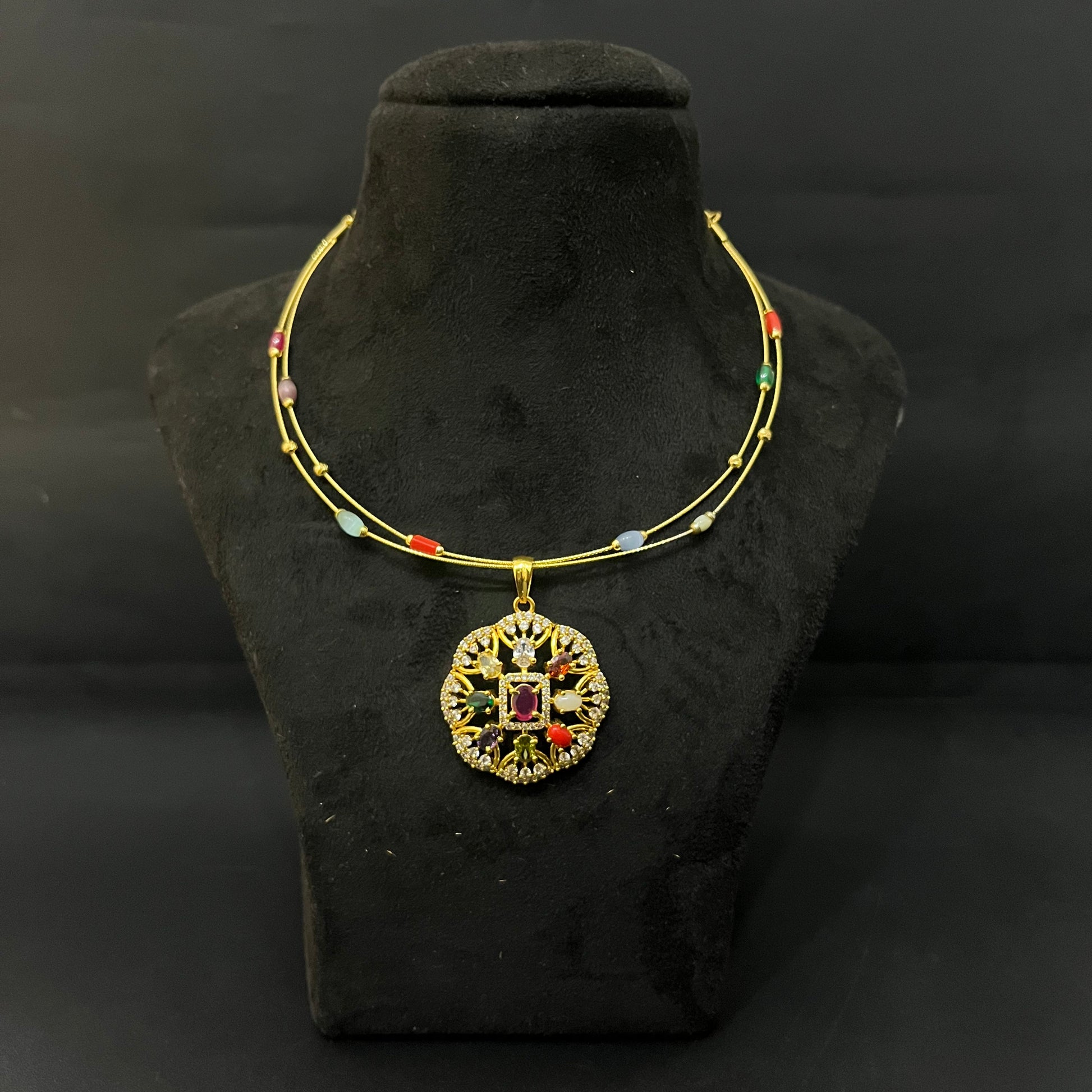 Navratna Stones Studded Necklace in Silver – Gold Polished