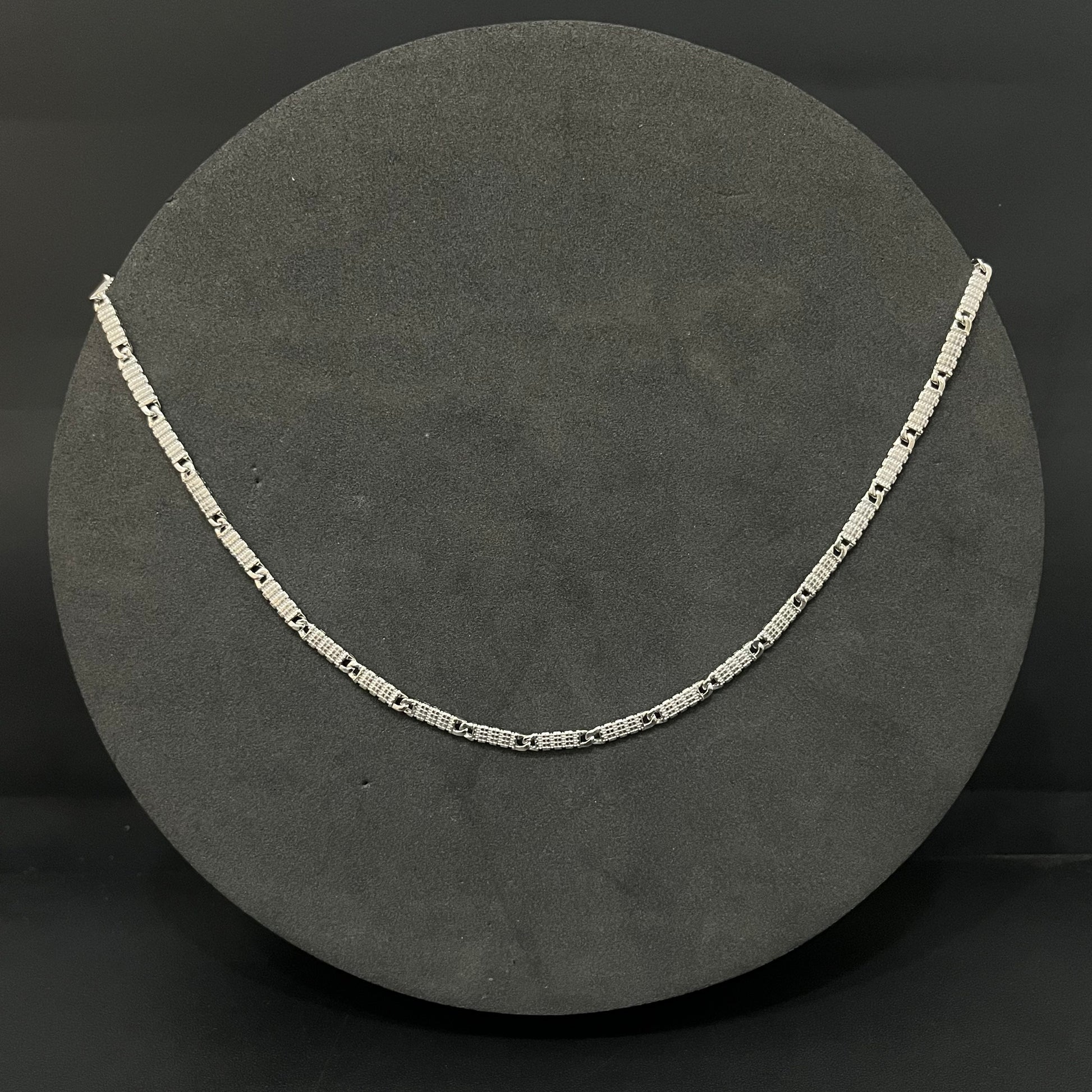 The Italian finish enhances the chain’s brilliance and provides a polished, mirror-like appearance that resists tarnish and wear. Its sleek link design combines durability with elegance, offering a comfortable fit and a versatile look that pairs effortlessly with both formal and casual attire.
