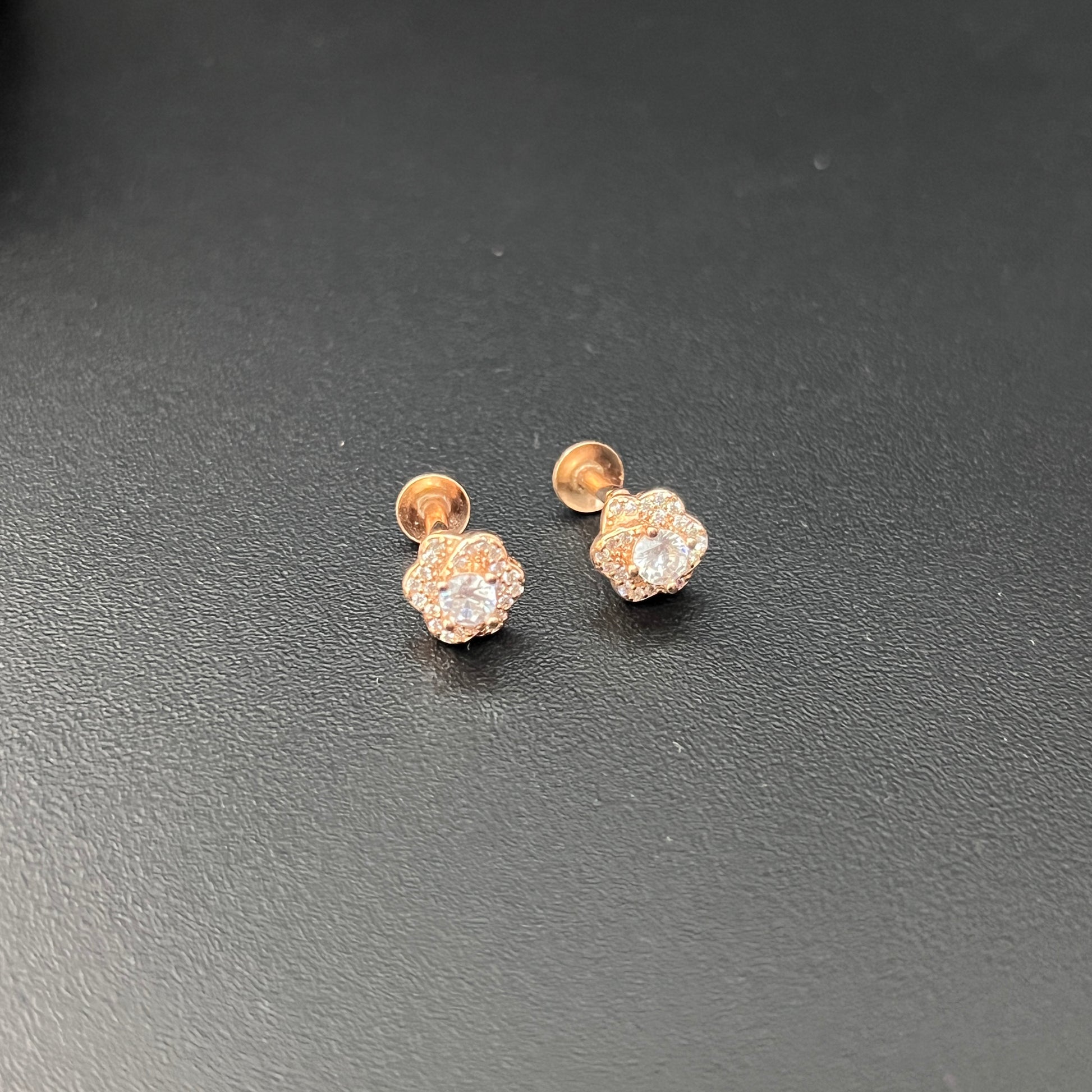 Sliver Ladies Stud Flower Solitaire Rosegold