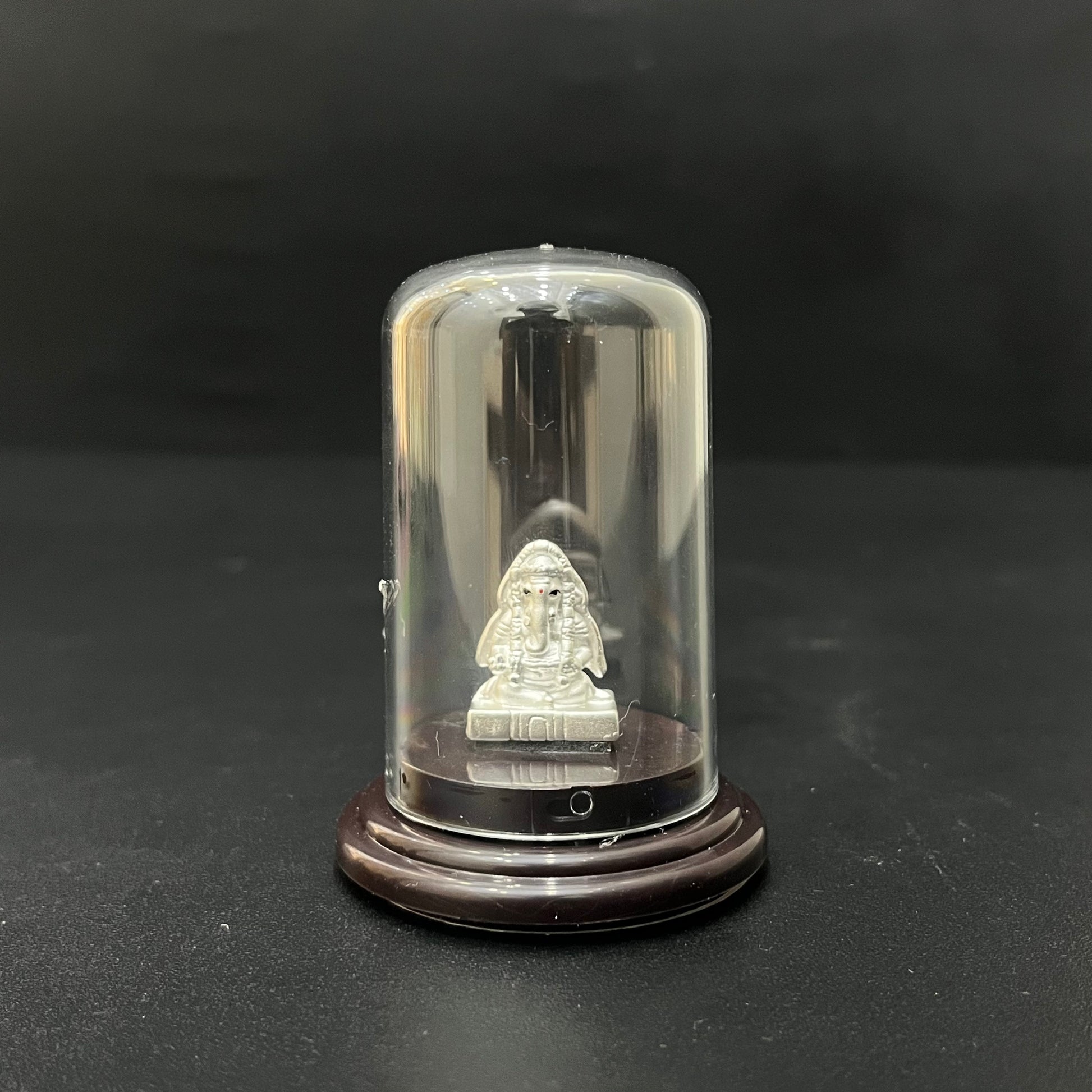 Pure Silver Ganesha Idol with Glass Covering