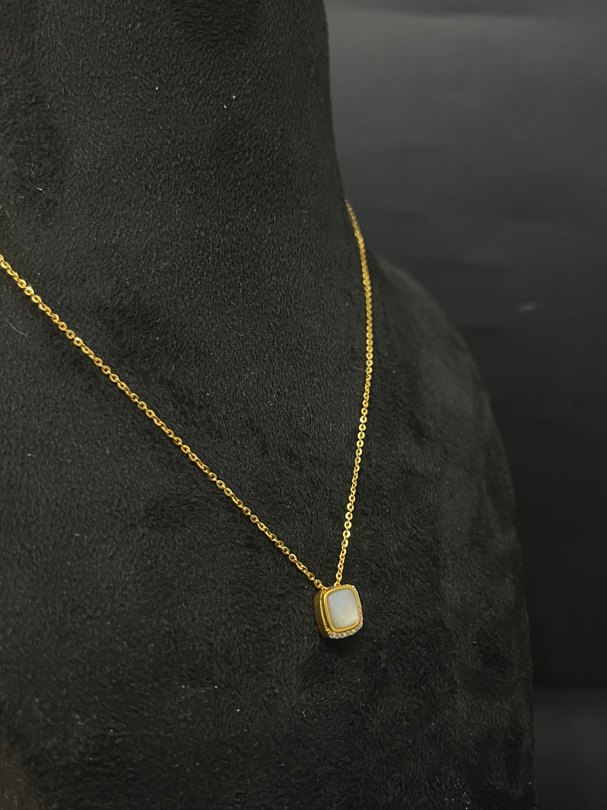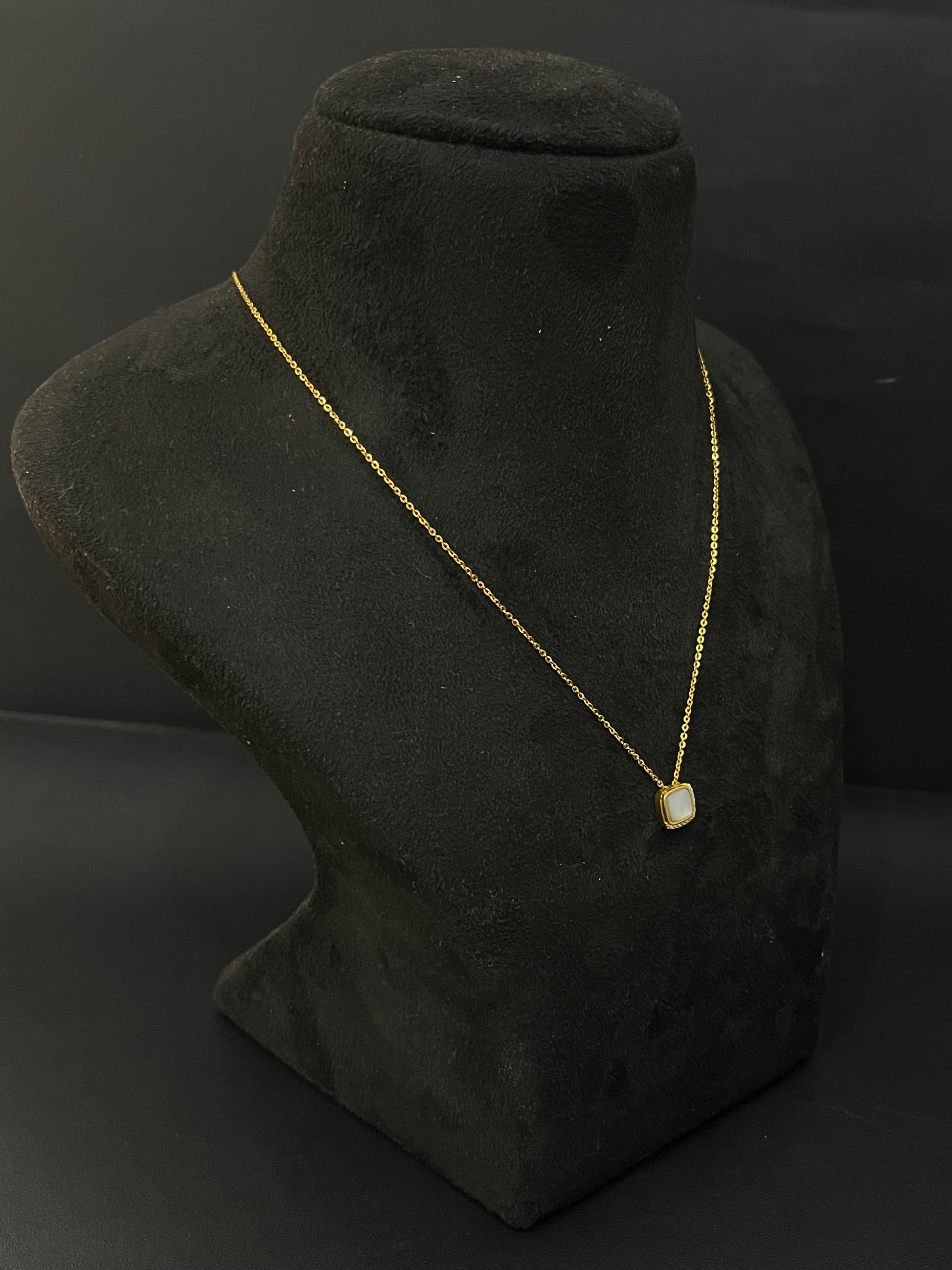 Silver Ladies Pendant Chain Green Mozonite Gold