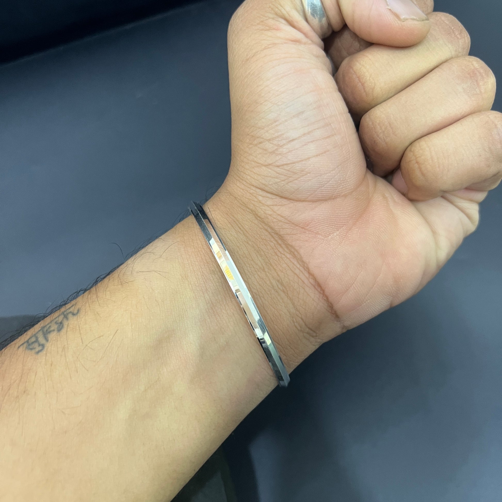 Silver Mens Punjabi Kada Slim Regular M