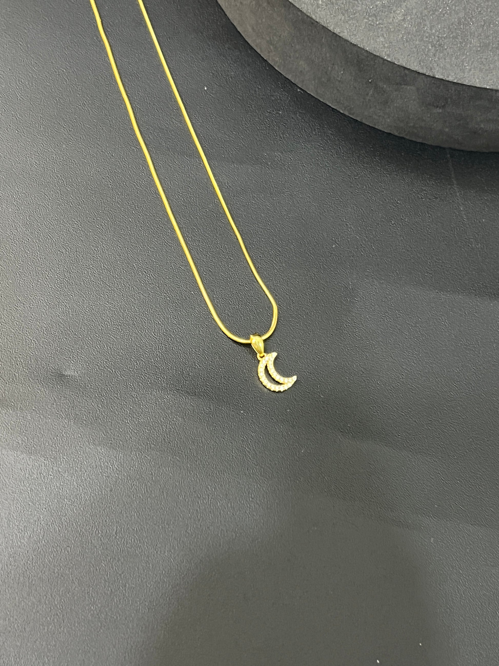 - This 925 Silver Half Moon Pendant Chain, beautifully finished with a luxurious gold polish.
