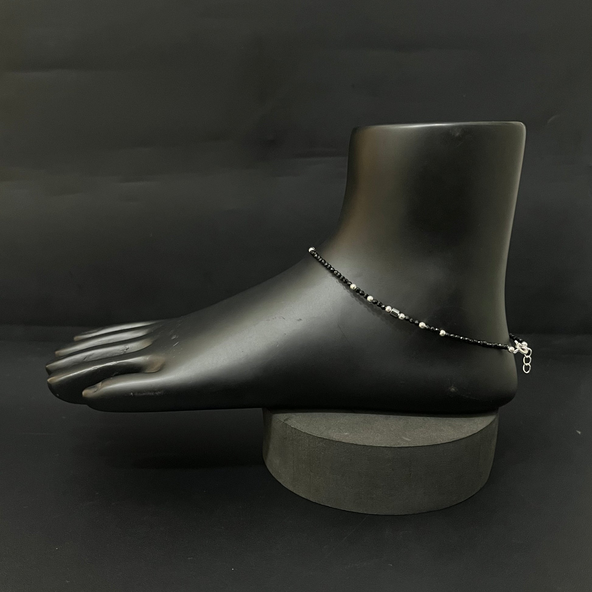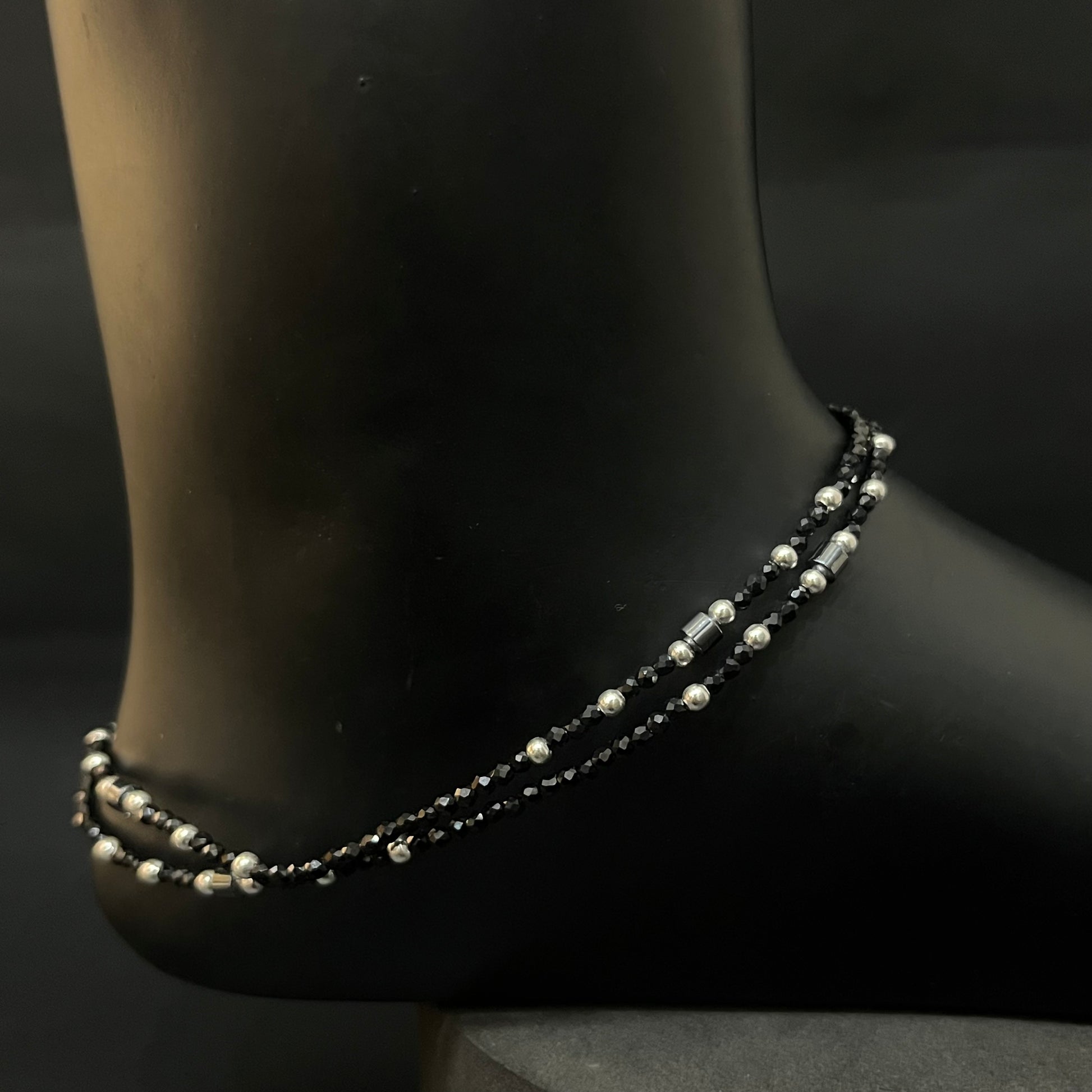 This Silver Black Beads Anklet is a timeless accessory crafted to elevate any look.