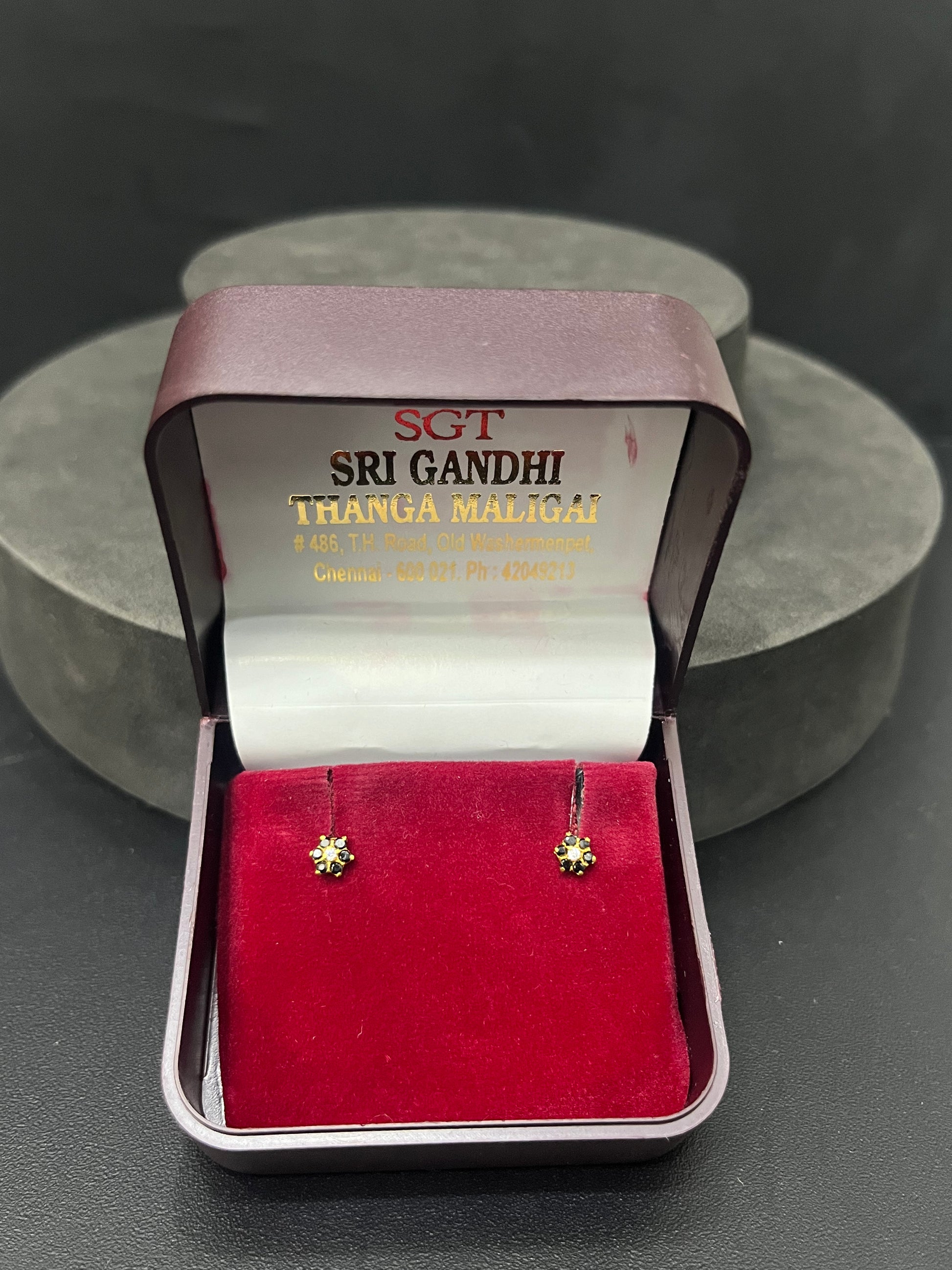 18K Gold Studs with South Screw – Elegant and durable, these pure 18K gold studs come with a secure South Indian screw back. Perfect for everyday wear, traditional occasions, and gifting.