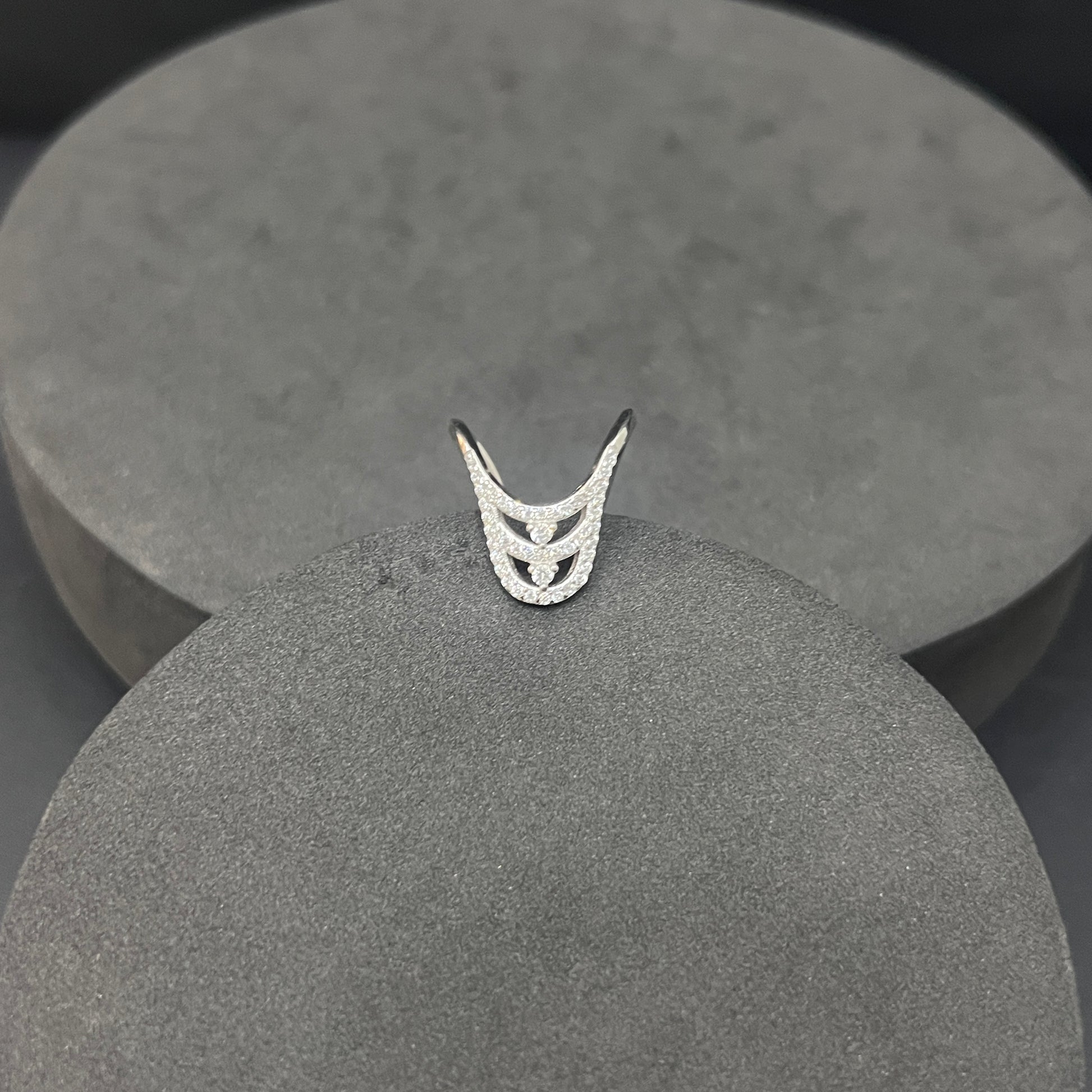 Shape: Recognizable inverted‑V or crescent U‑form, often open-ended or non‑circular, wrapping gently around the finger.