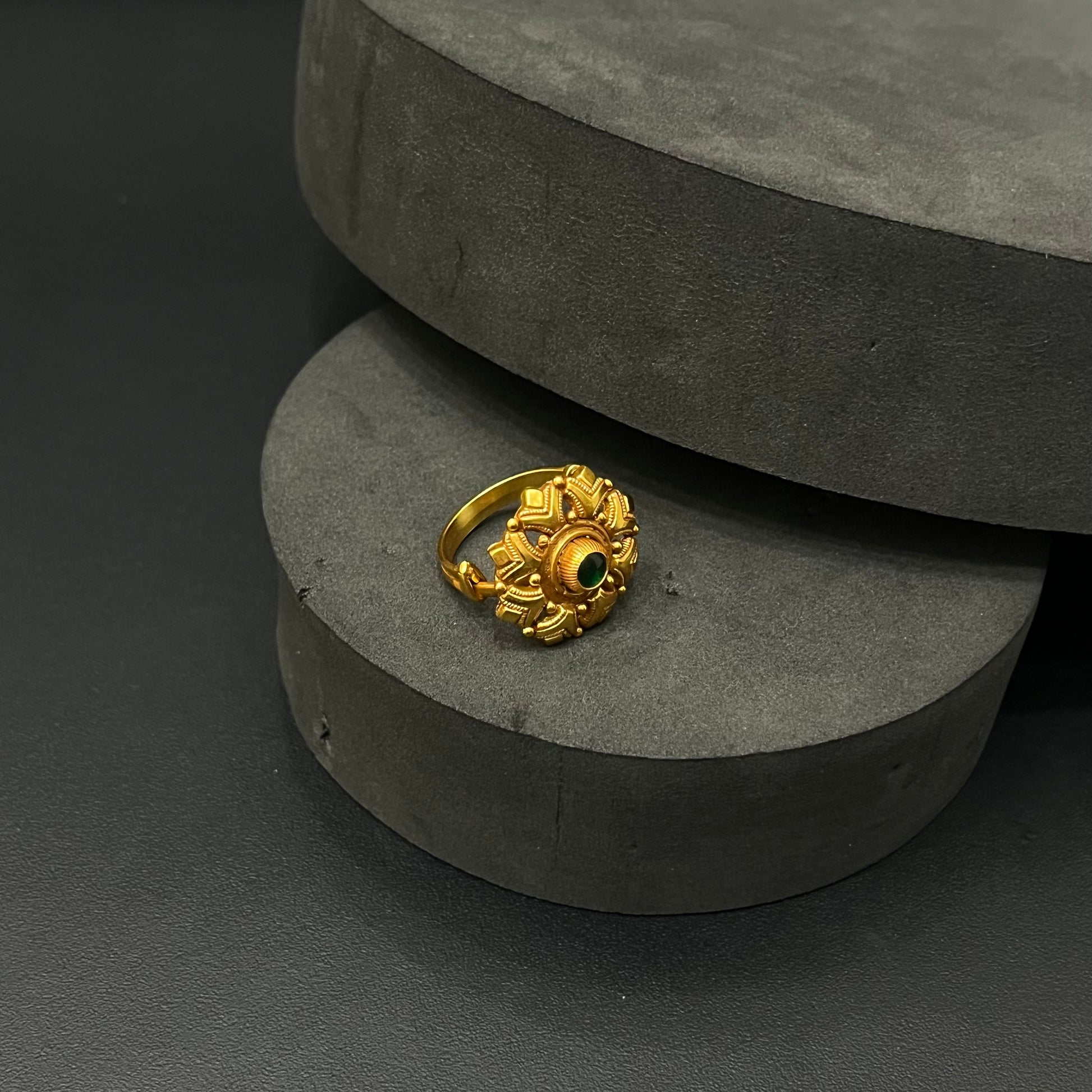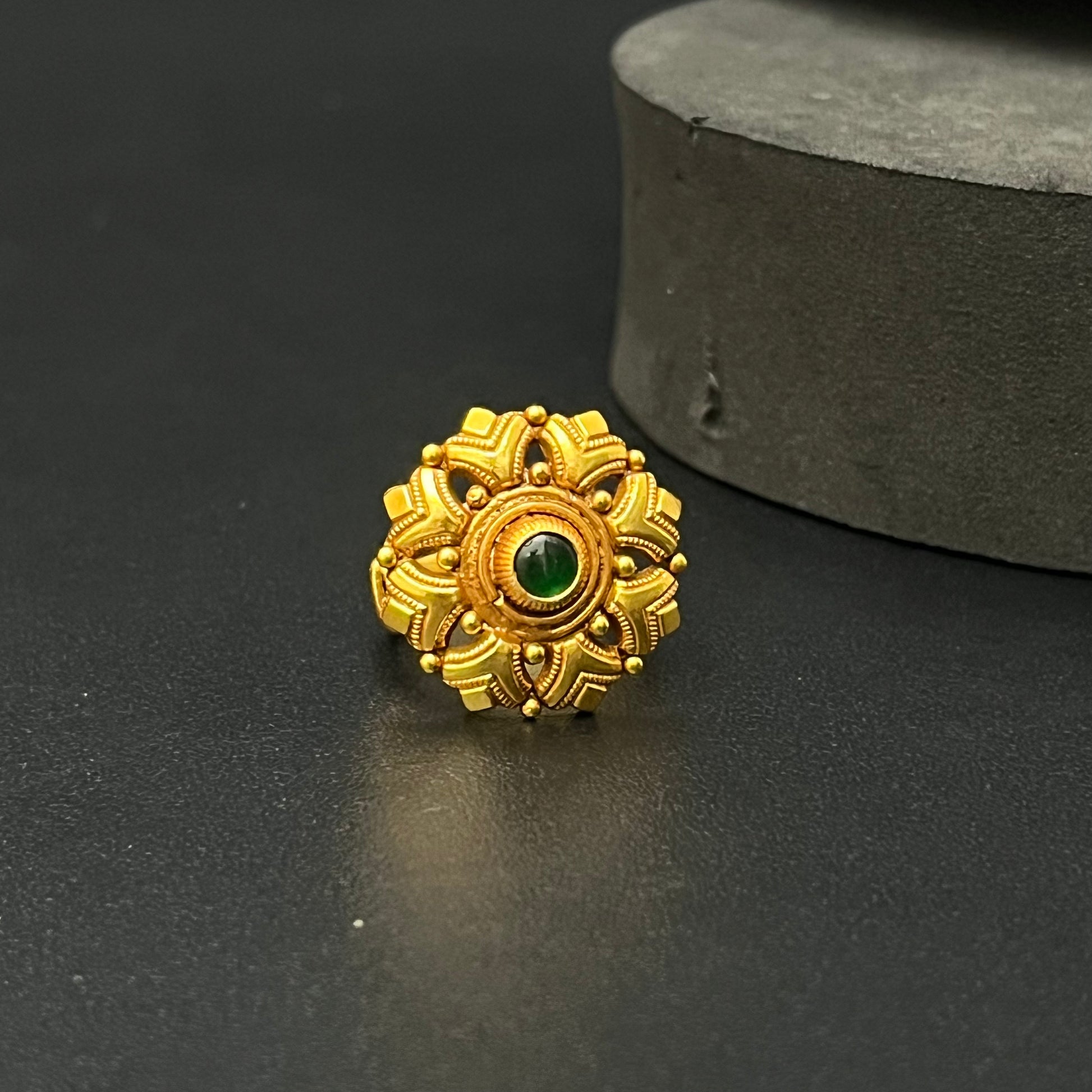 Silver Antique Finished Ring Adjustable Tri Cut Green