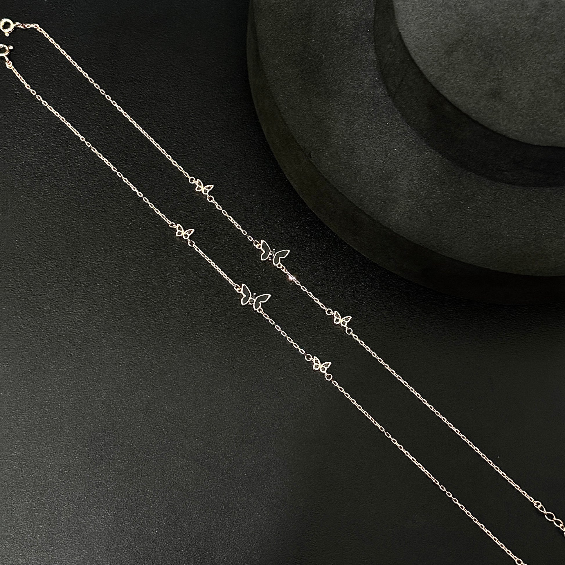 Silver ladies anklet Black Butterfly RG