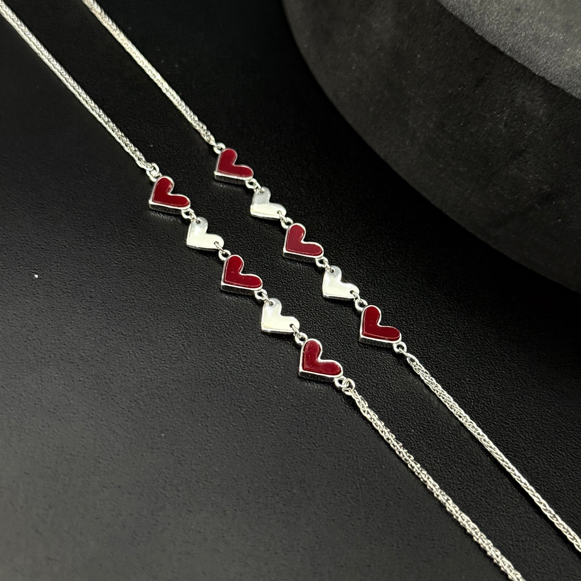 Silver ladies anklet White & Red Heartz SS