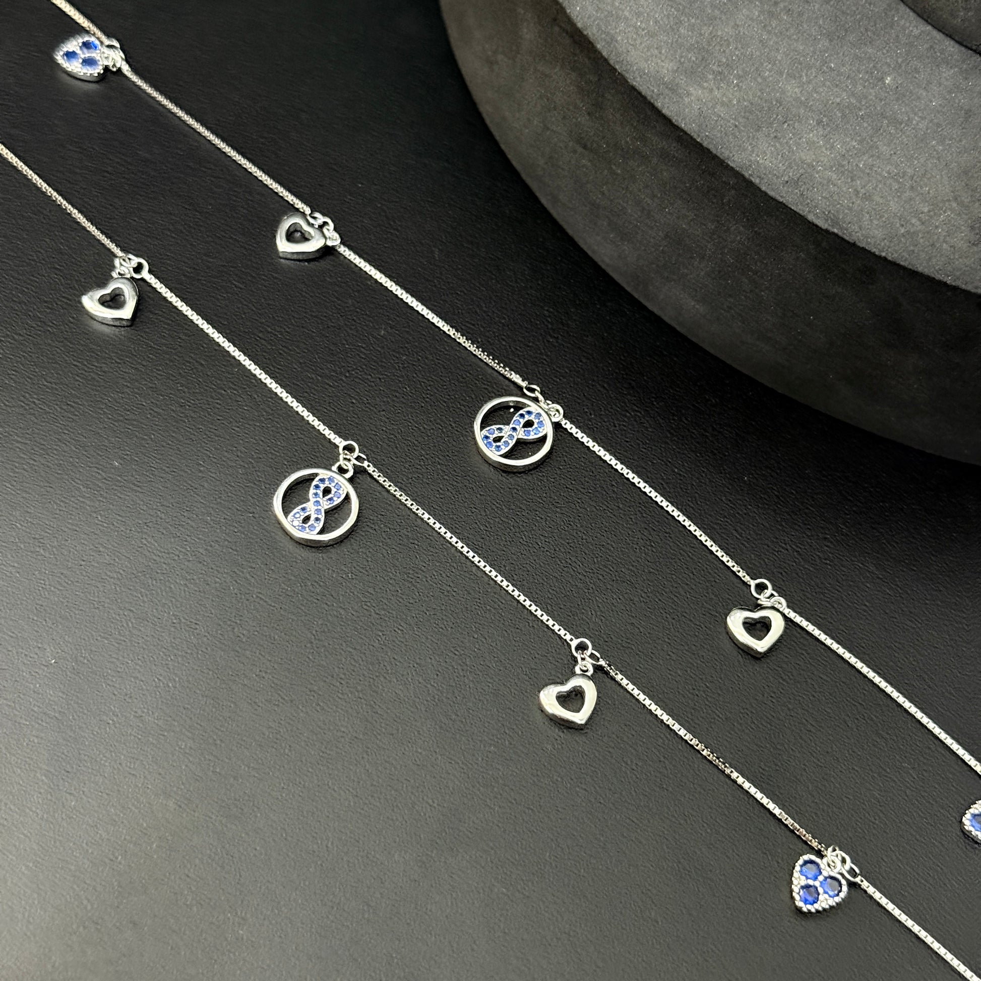 Silver Ladies Anklet Circle infinty & Heart Charms SS