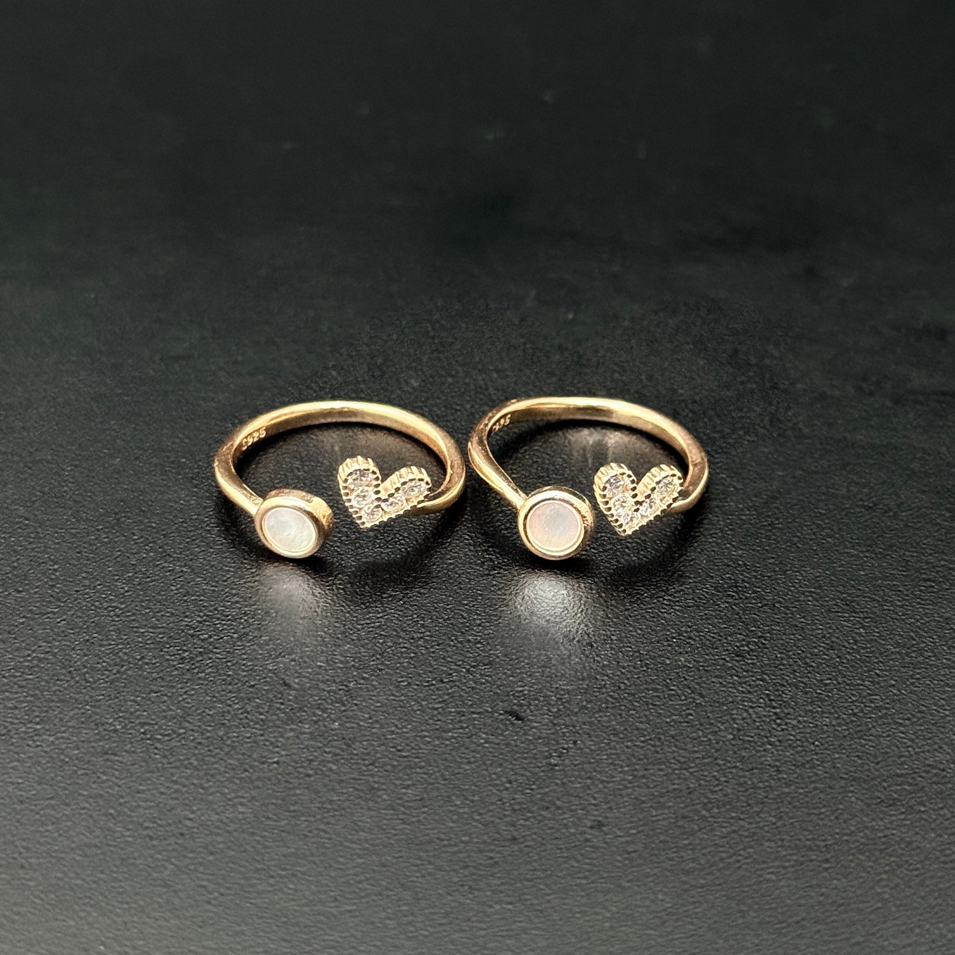 Ladies Toe Rings Rosegold Heart and Cermaic Stone
